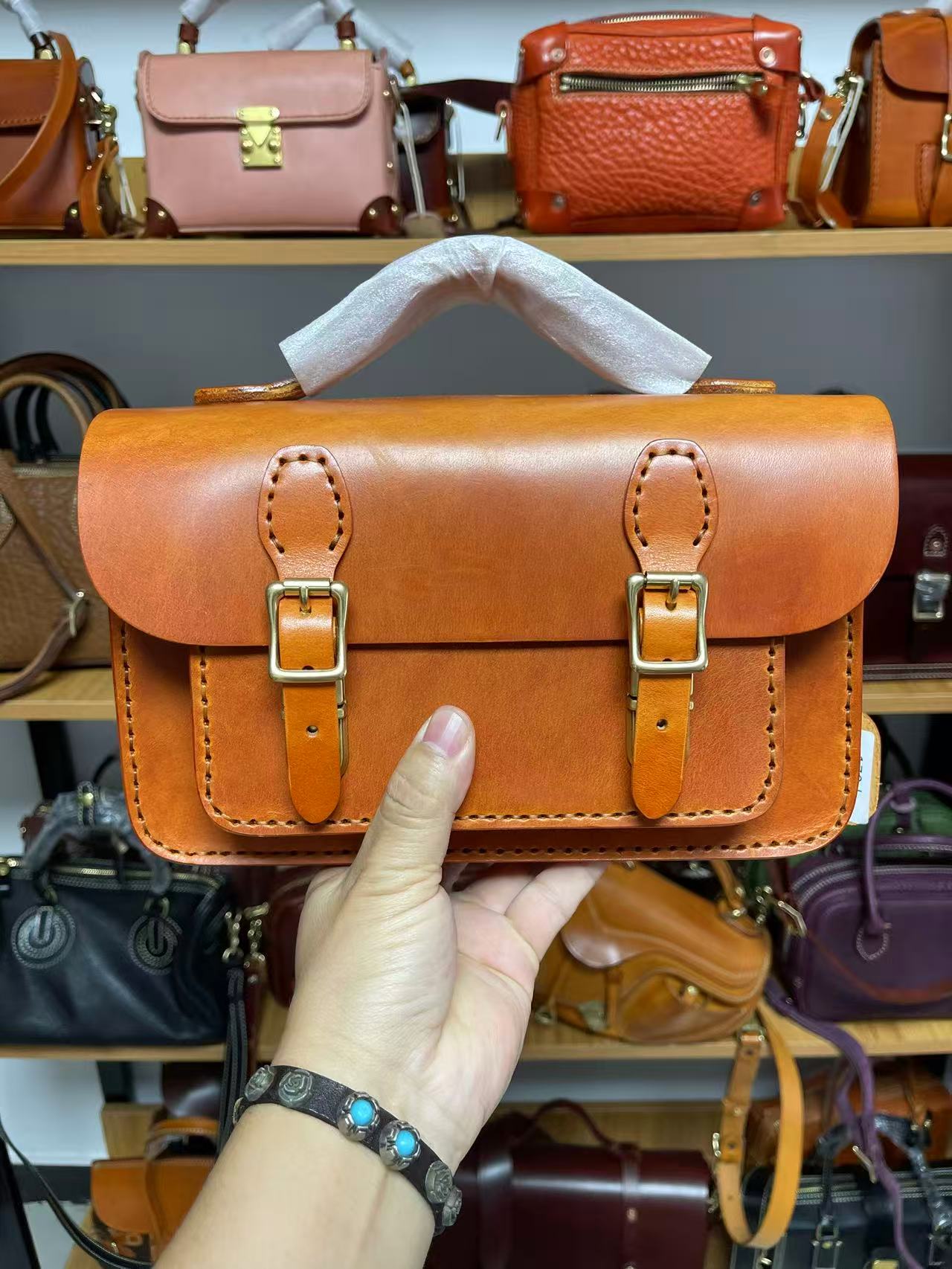 Handmade thickened oil-waxed vegetable-tanned leather messenger bag